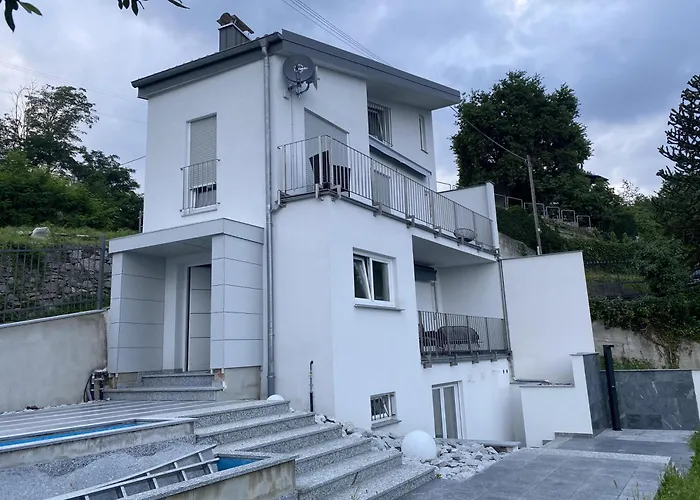 مطار ميلان مالبينسا يبعد 45 كم من هذه الفيلا. منطقة التشمُّس والتراس للتشمُّس والشواء موفرة في Modernes Haus Mit Seeblick Auf Lago Maggiore.